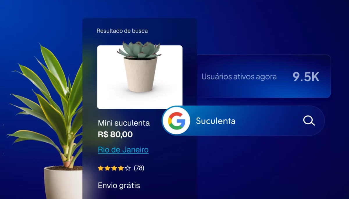 Isso porque o SEO faz parte do DNA da Nuvemshop. A plataforma oferece tudo o que você precisa para aparecer no Google e atrair mais visitantes: URLs amigáveis, meta descrições editáveis, sitemap automático e integração com Google Analytics 4 e Google Shopping.
