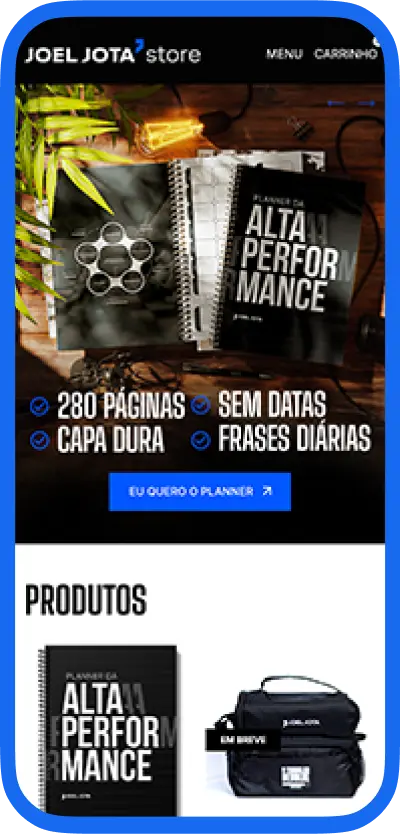 Coloque seus sonhos no mundo: escolha o layout ideal para sua loja e personalize com a cara da sua marca.