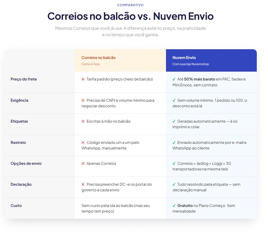 Sua loja Nuvemshop é o passaporte para pagar mais barato no frete e parar de perder tempo nas filas.
