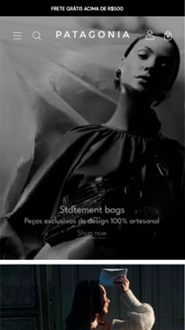 O Patagonia une performance otimizada, design minimalista e edição simples. Crie landing pages personalizadas e adicione seções, banners e vídeos em qualquer página da loja.