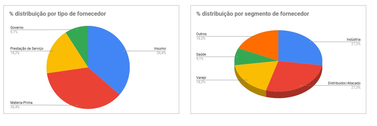 A partir daí, avaliações de tempo de entrega, atendimento e condições comerciais se integram à aba “Avaliação”, sem que você precise digitar nada duas vezes. Por fim, um dashboard claro e visual reúne gráficos de desempenho, distribuição de fornecedores por segmento e status de parceria, facilitando negociações e futuras cotações.