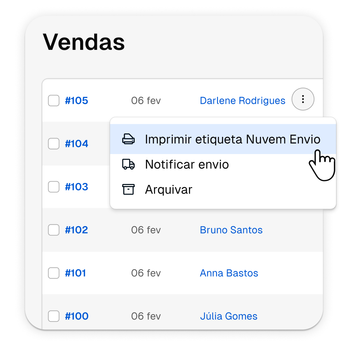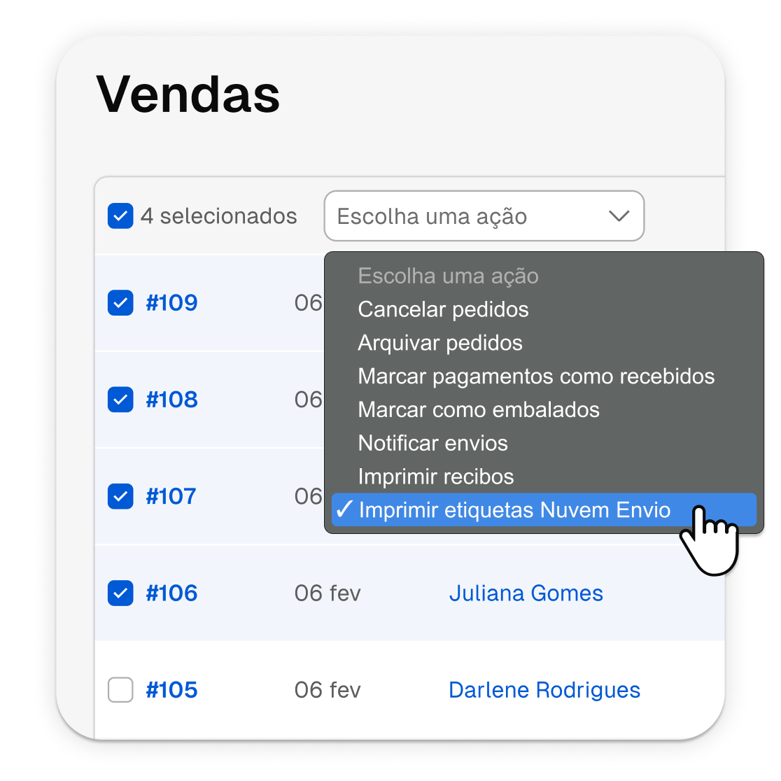 Gere etiquetas para múltiplos pedidos ao mesmo tempo, direto da Lista de Ações.