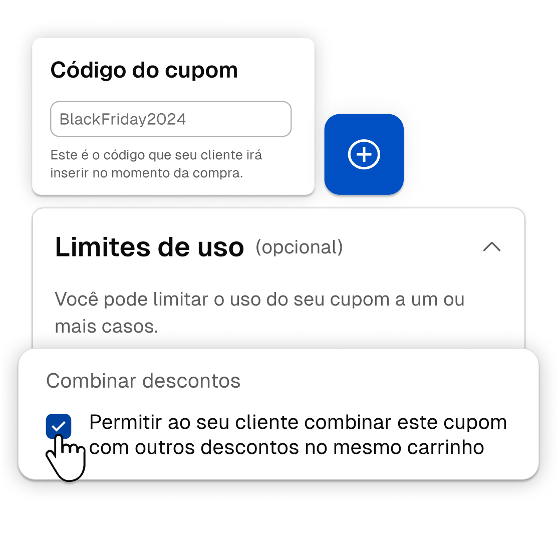 Garanta a maior quantidade de lucro limitando a combinação de cupons e descontos. Destilde “permitir combinar” e evite que sua estratégia de marketing saia do controle.